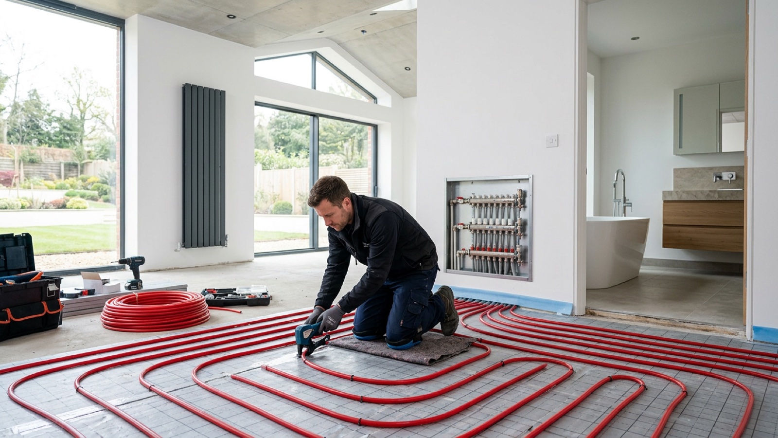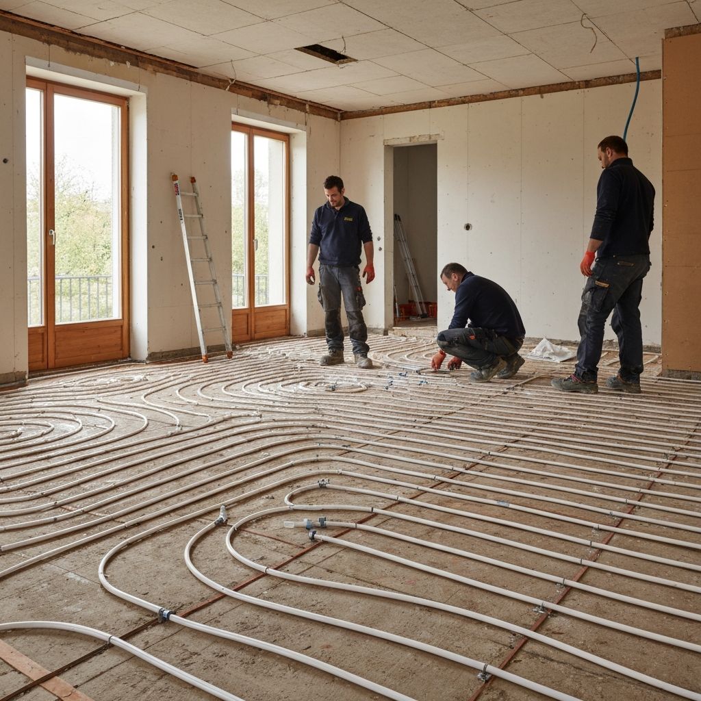 Pompe à chaleur, plancher chauffant et plomberie premium pour votre rénovation.