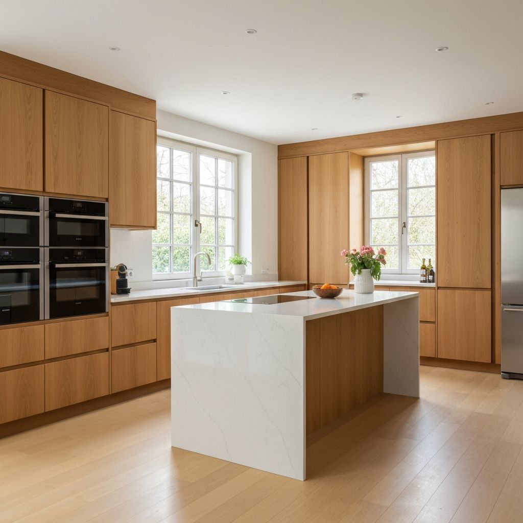 Conception et réalisation de cuisines de qualité entièrement personnalisées, de l'îlot central aux colonnes de rangement. Nous maîtrisons l'intégration des électroménagers, la pose de plans de travail en quartz, granit ou bois massif, et la réalisation de façades dans toutes les finitions. Chaque cuisine est un projet unique, pensé pour votre façon de vivre et de cuisiner.