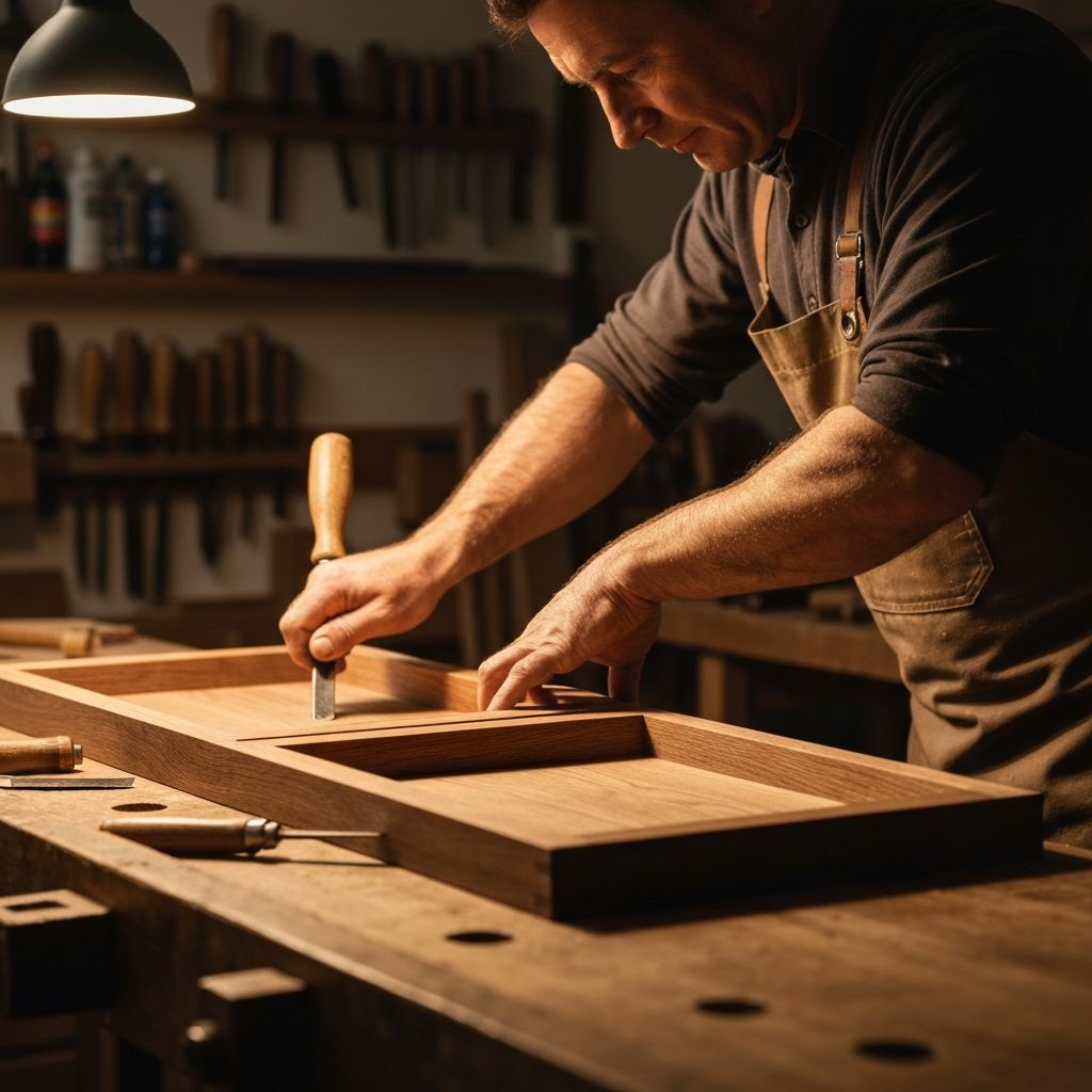 La menuiserie sur mesure est l'âme d'une rénovation de qualité. Portes, fenêtres, dressings, bibliothèques, cuisines — chaque pièce est conçue et fabriquée avec précision pour s'intégrer parfaitement à votre espace.