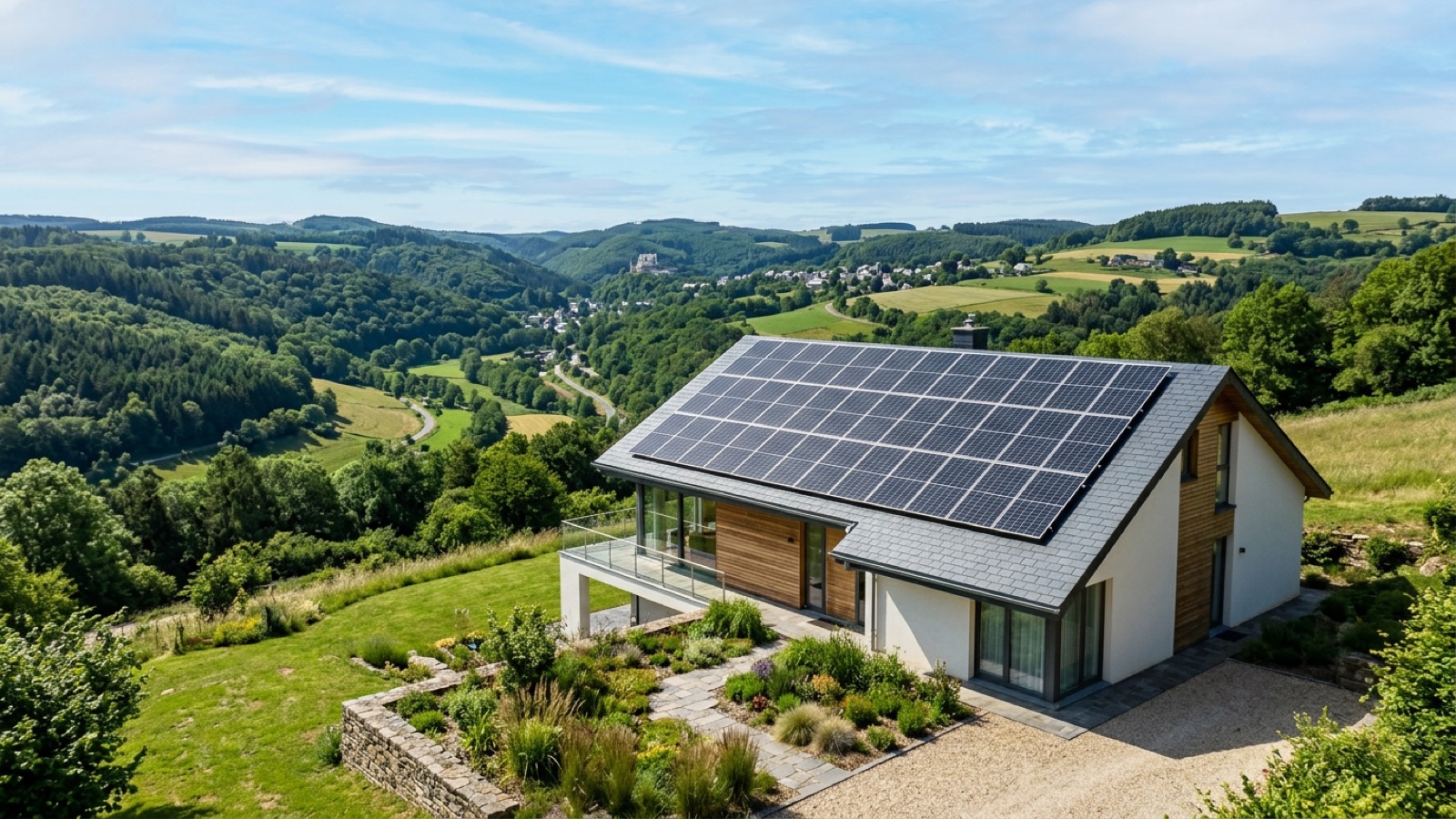 Installation photovoltaïque résidentielle au Luxembourg et en Belgique par Acrealux. Panneaux solaires, bornes EV, gestion intelligente de l'énergie.